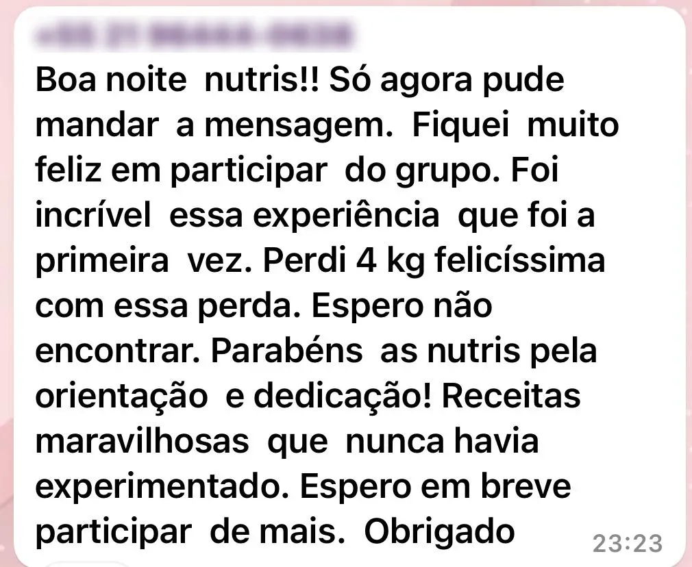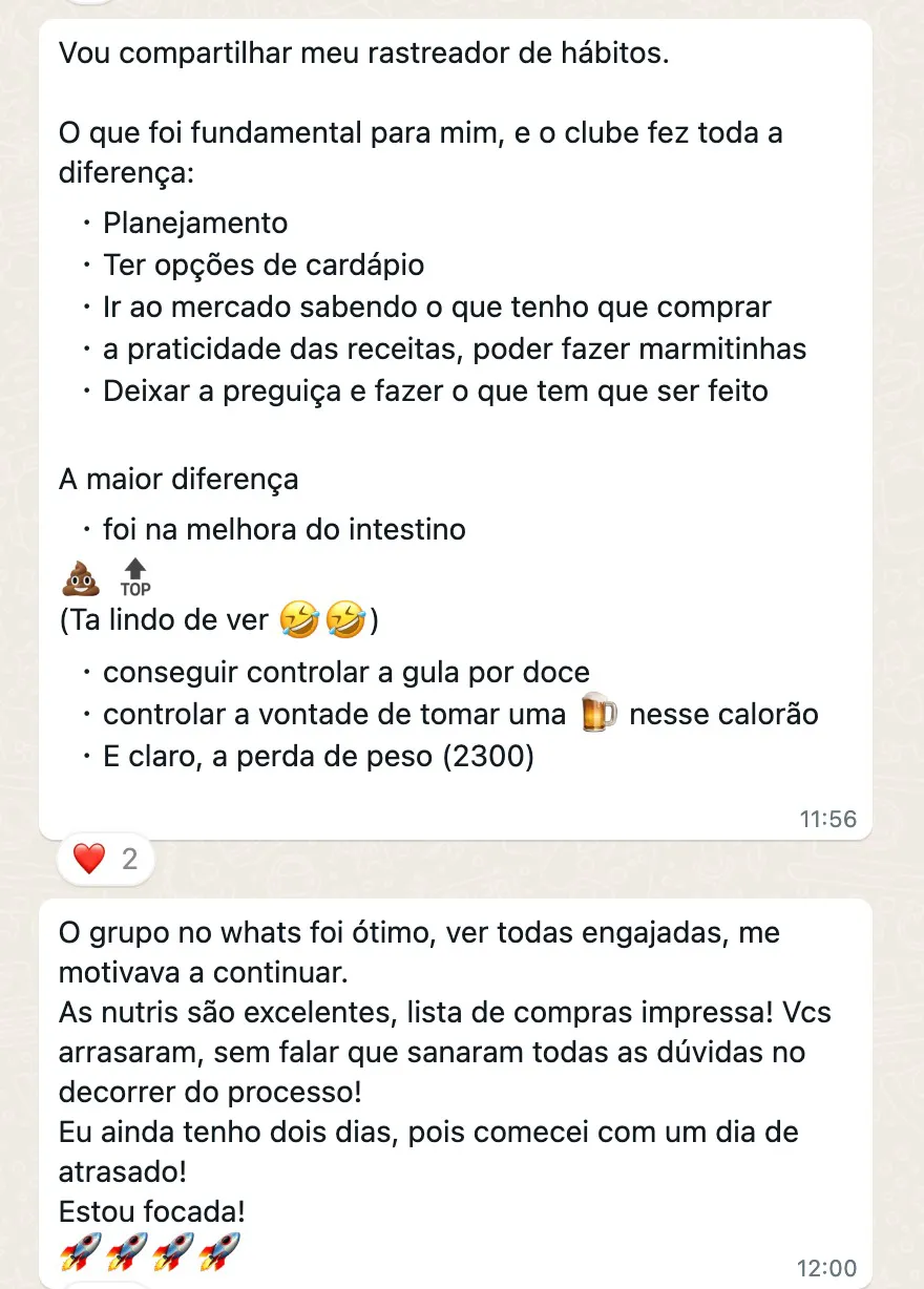 As nutris irão seguir os cardápios com você durante todo o período do grupo, compartilhando dicas e bastidores