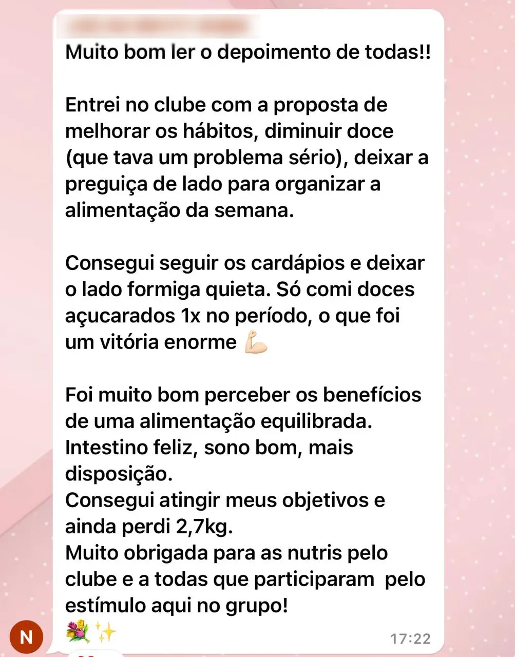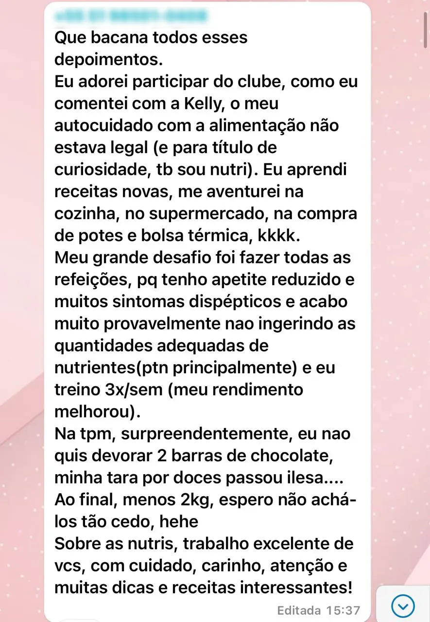 Grupo VIP no Whatsapp para compartilhar seu progresso.
